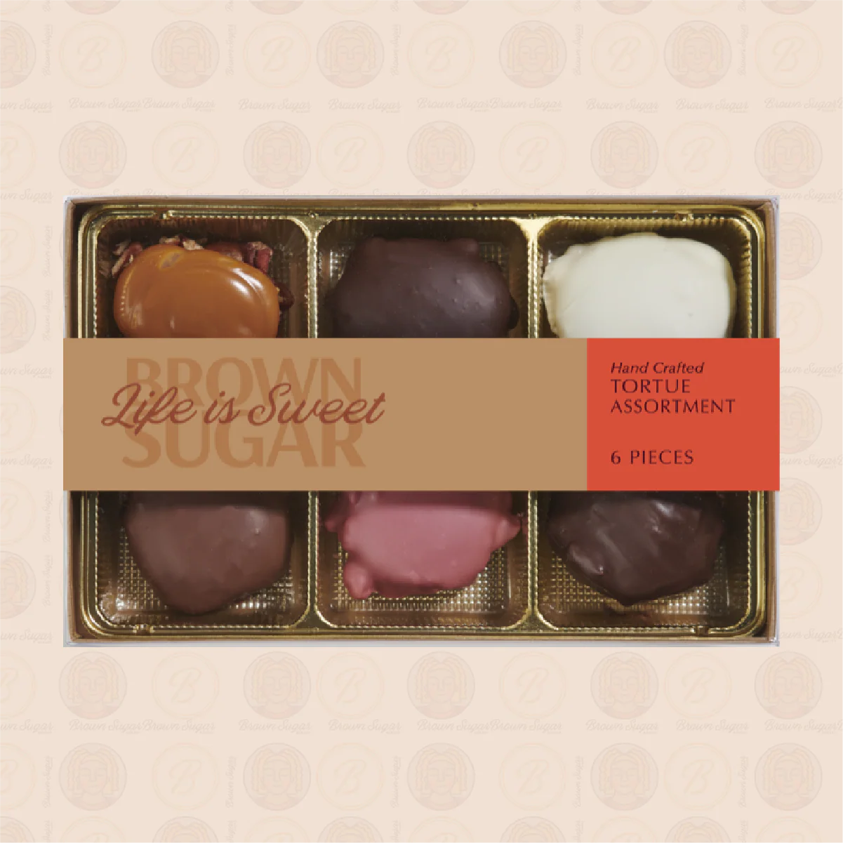 Our famous "Tortue Assortment" is filled with jumbo fancy pecans, creamy caramel, and smothered in pure white, dark & milk chocolate.